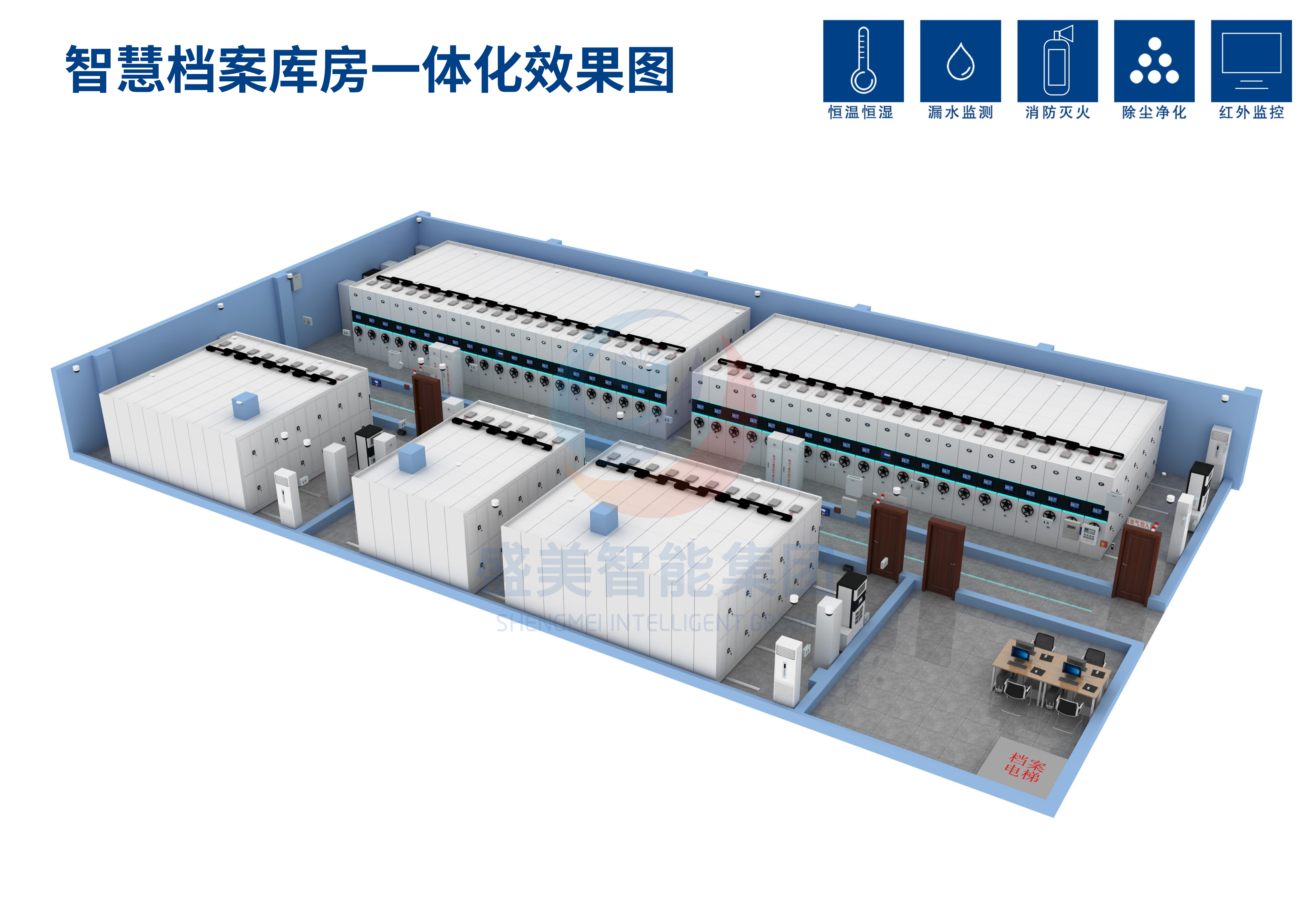 1.智能化管理:機關(guān)應(yīng)按照檔案信息化要求,建設(shè)或配備能夠滿足庫房現(xiàn)代化管理、檔案數(shù)字化、電子文件及電子檔案管理需求的基礎(chǔ)設(shè)施設(shè)備。智能庫房管理基礎(chǔ)設(shè)施設(shè)備應(yīng)滿足溫濕度調(diào)控、漏水監(jiān)測、消防報警、安全防范、視頻監(jiān)控等系統(tǒng)集成管理以及其他智能管理需要。