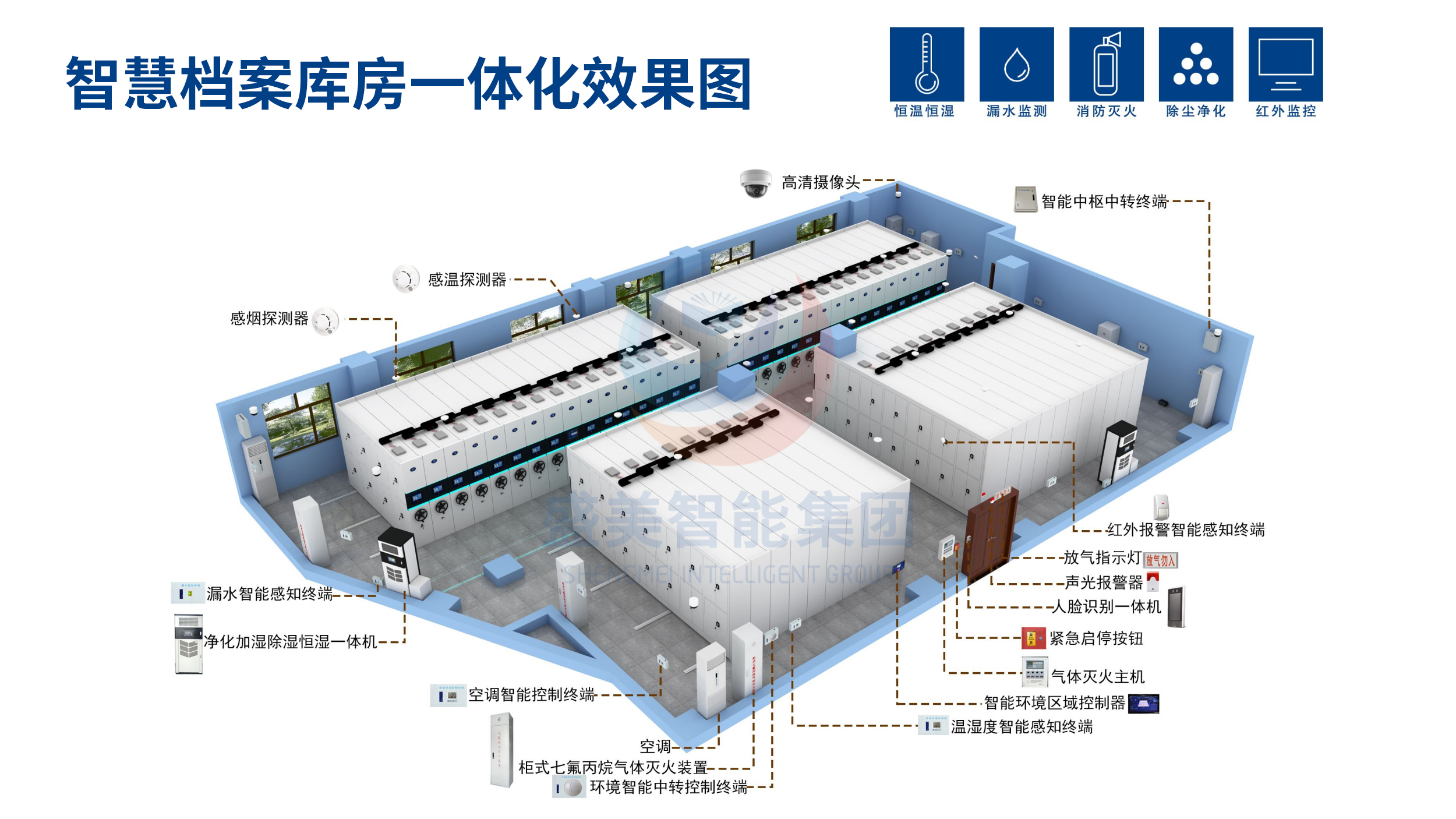 檔案庫房建設標準的智能化系統(tǒng)是一個綜合性的解決方案,旨在通過現代信息技術手段,實現檔案管理的智能化、自動化和高 效化。以下是檔案庫房建設標準智能化系統(tǒng)的主要組成部分及其特點: